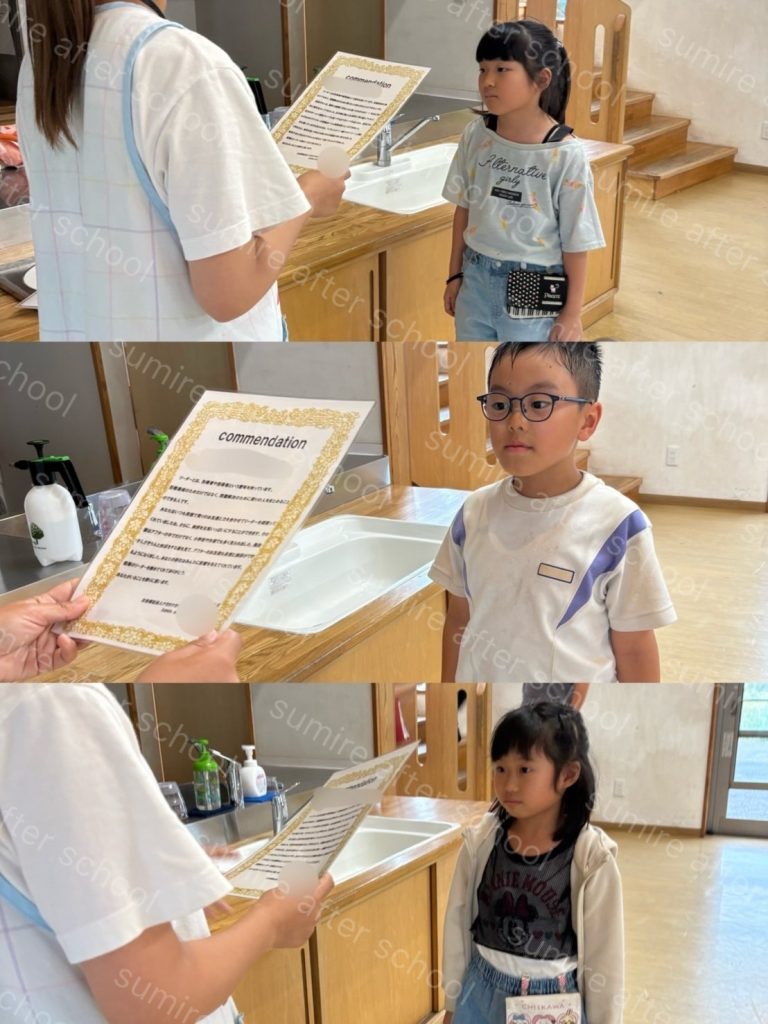 9月30日(火)に前期にリーダーを務めてくれた子どもたちにコメンデーションを渡しました。